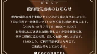 平素より【COCOHOTEL BARON】をご愛顧いただき、誠にありがとうございます。この度、備えつけのシャンプー・コンディショナー・ボディソープにつきまして、異物混入等による衛生面の観点から、これまでの浴室内設置を見直し、洗面スペースにて...