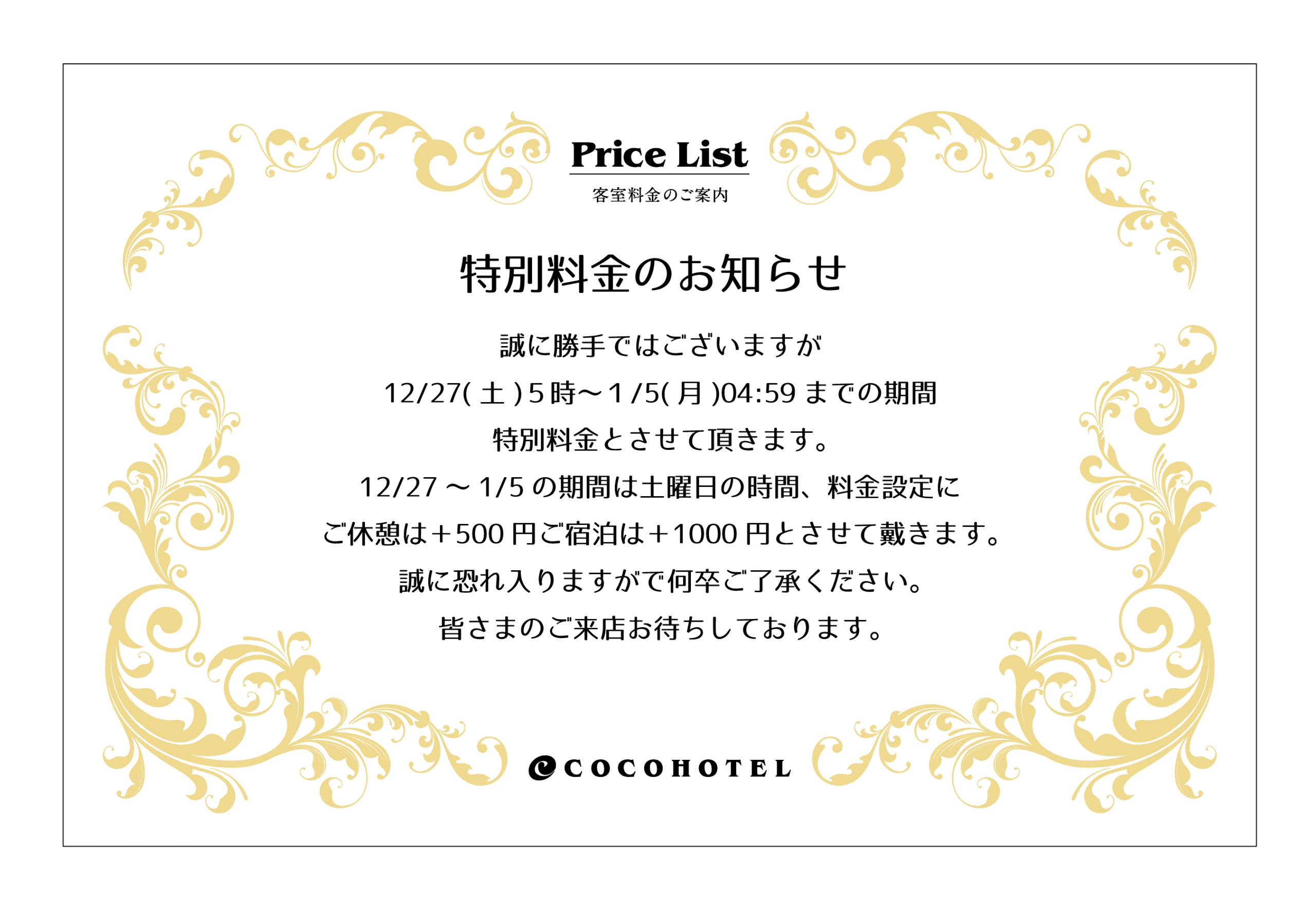 2025年12月27日 / 最終更新日時 : 2025年12月26日 cocohotel 未分類 ☆年末年始の営業のご案内 コメントを残す コメントをキャンセルメールアドレスが公開されることはありません。 ※ が付いている欄は必須項目ですコメント ※ 名前 ※ メール ※ サイト Δ